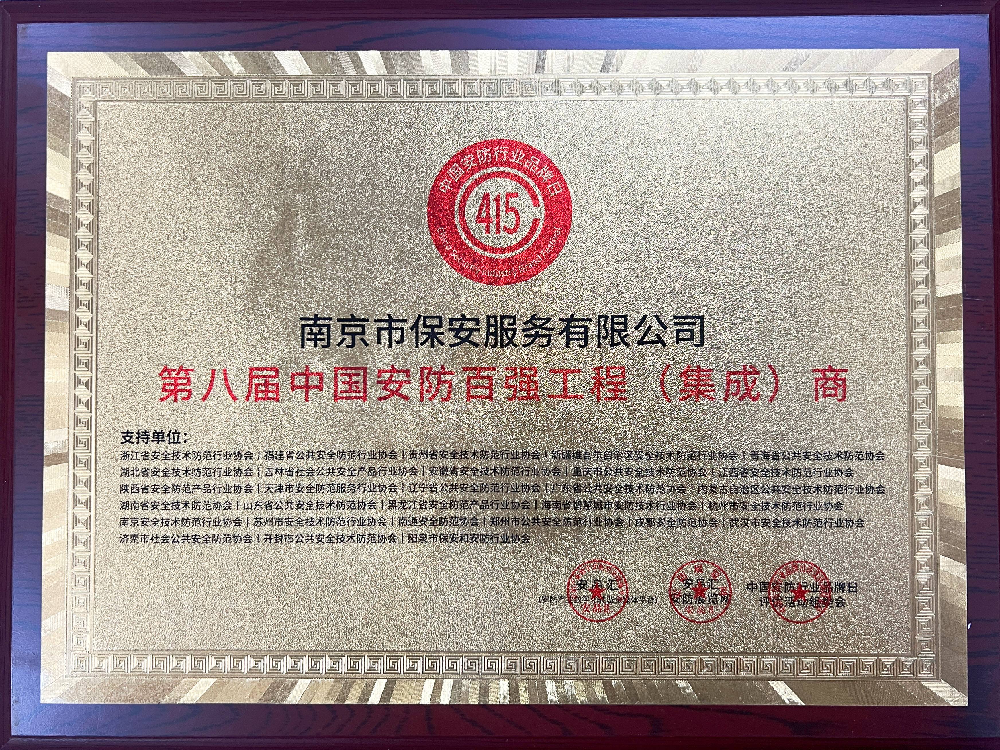 第八屆中國安防百強(qiáng)工程(集成)商榮譽(yù)稱號(hào)