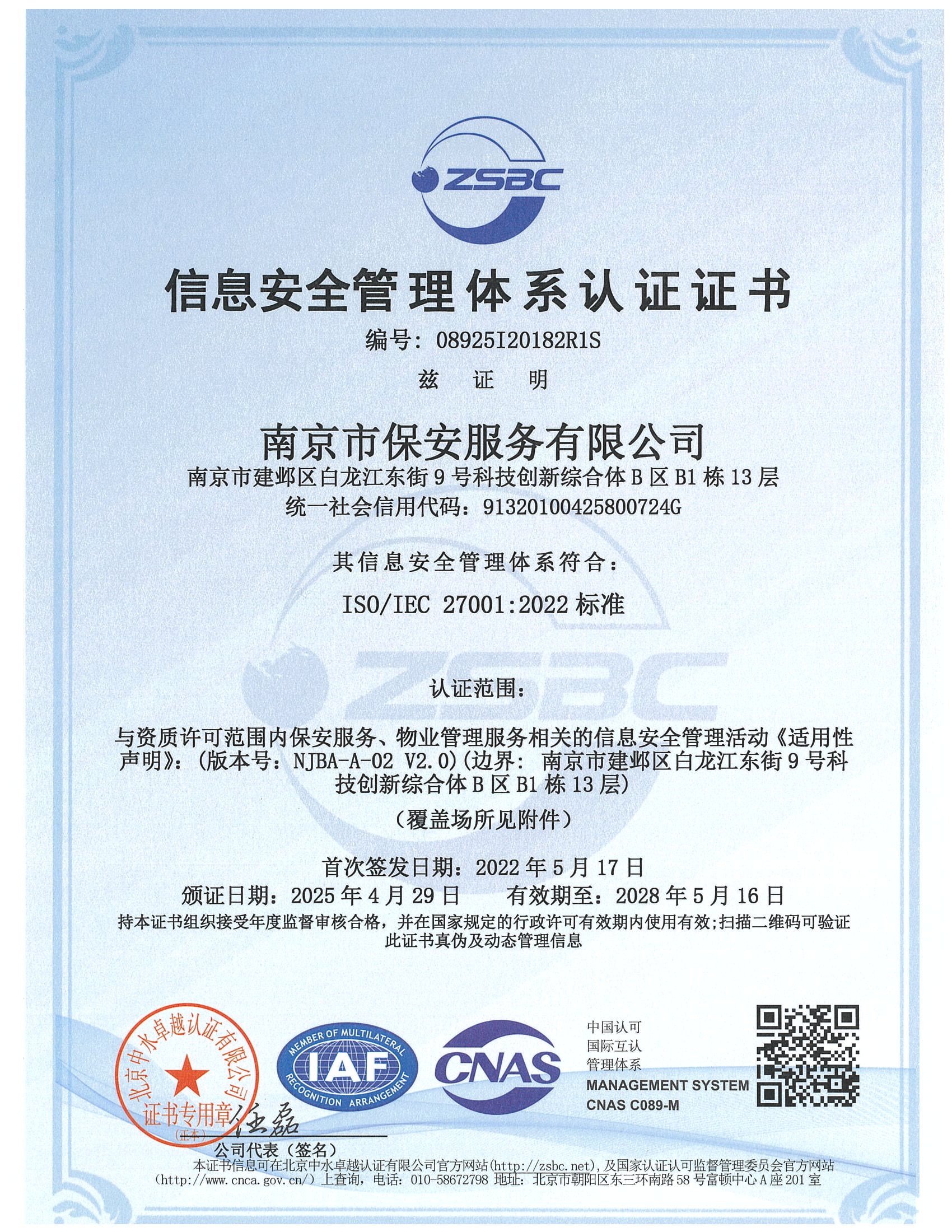 祝賀:南京市保安服務(wù)總公司通過企業(yè)誠信管理體系認(rèn)證和企業(yè)社會(huì)責(zé)任管理體系認(rèn)證